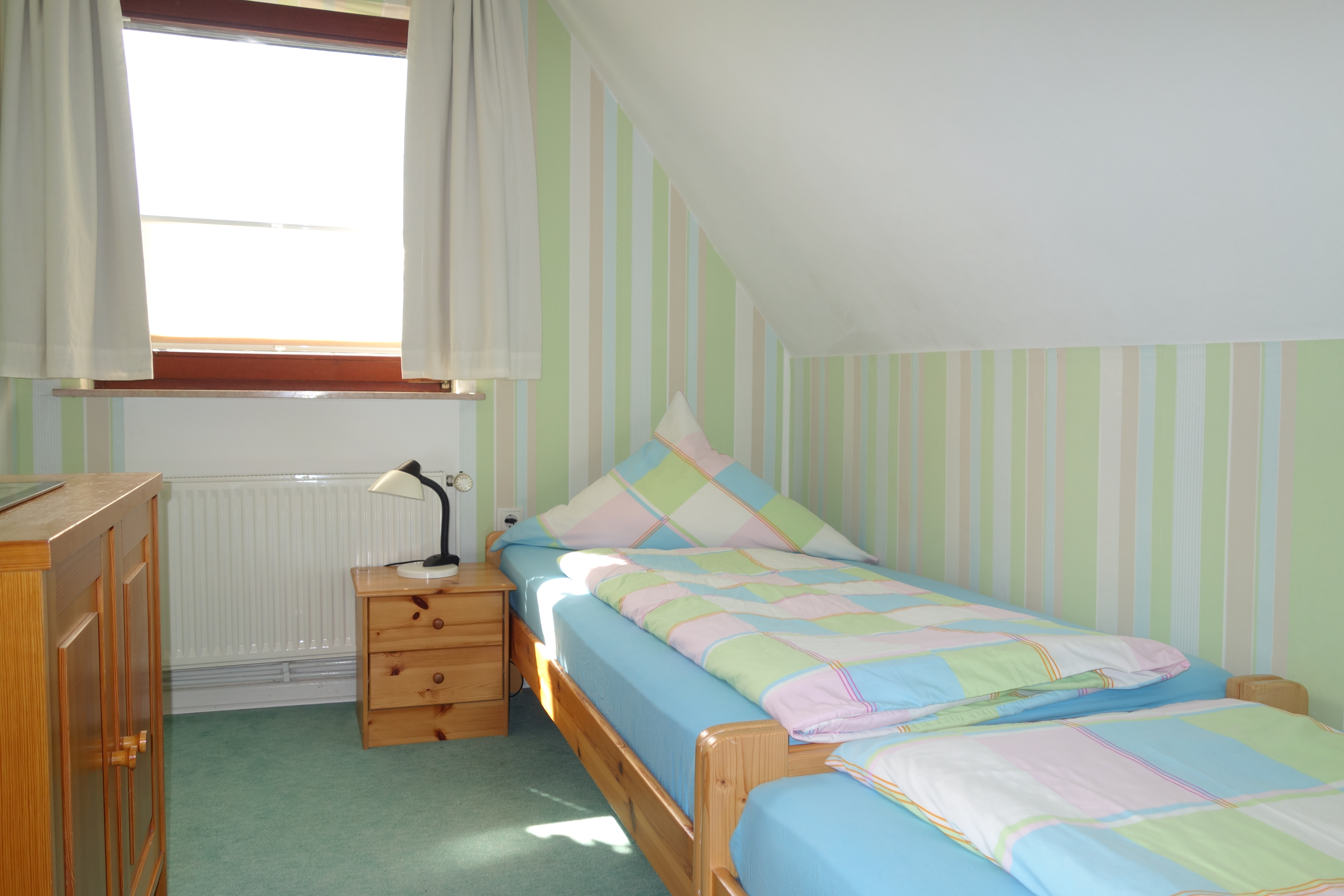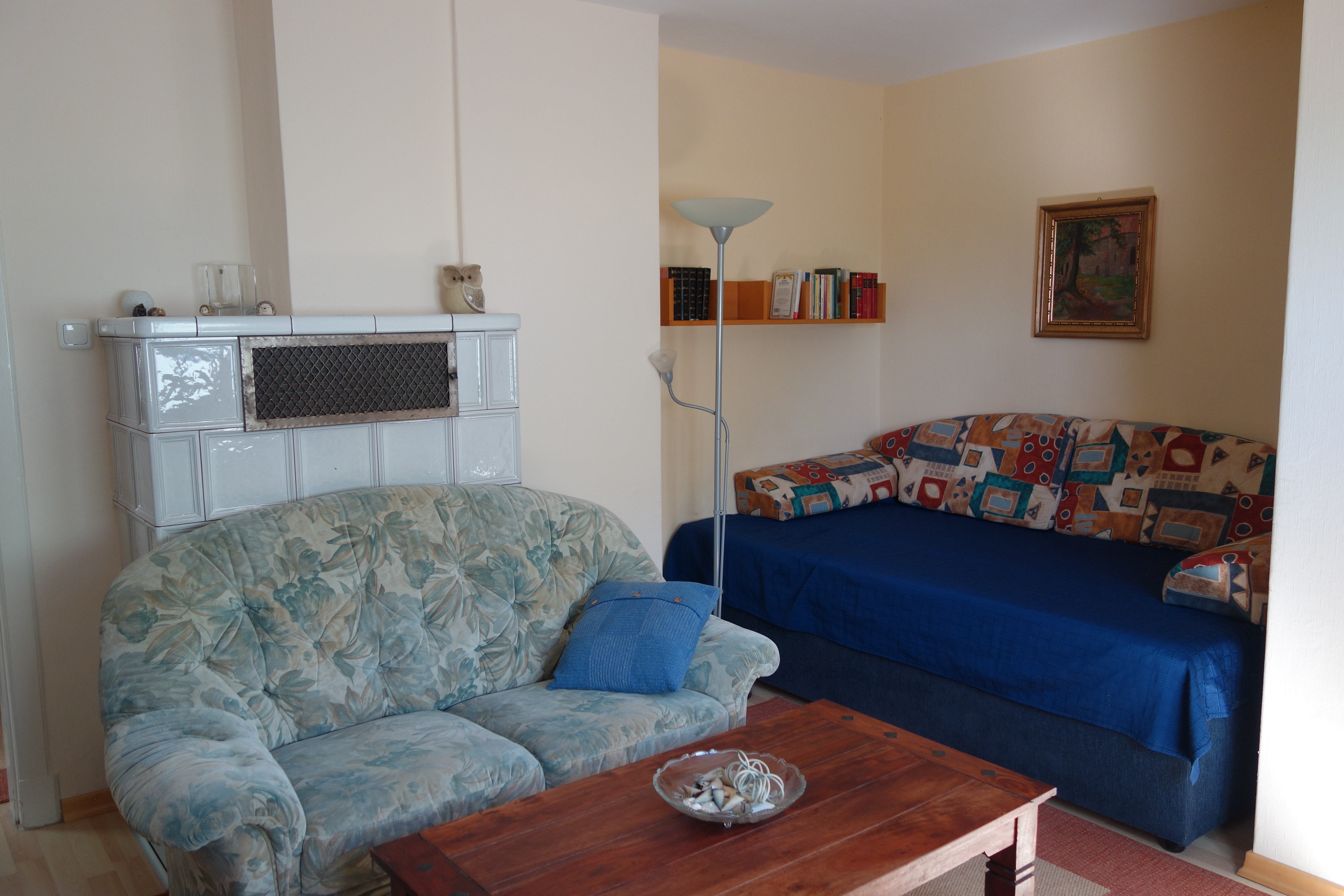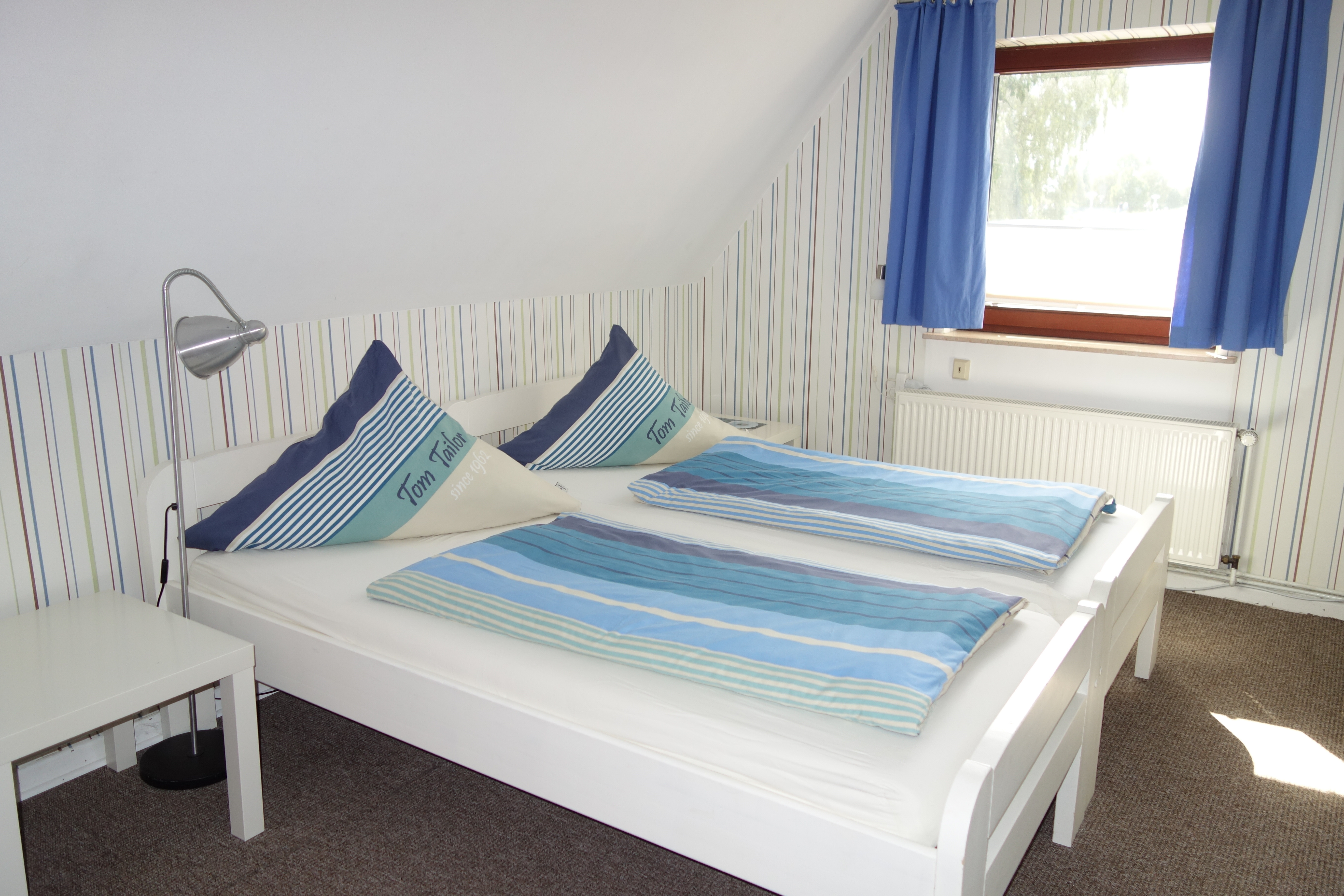 In der 1. Etage befinden sich ein Schlafzimmer mit Doppelbett und ein kleines Schlafzimmer mit zwei Einzelbetten. Von dort können Sie auch einen wunderschönen Blick auf die Ostsee genießen.