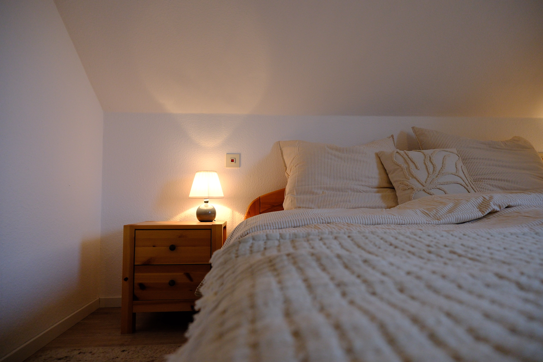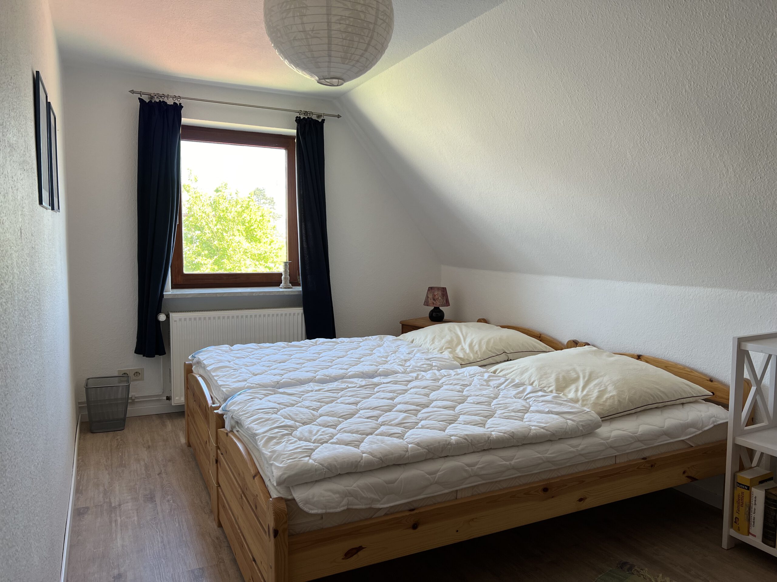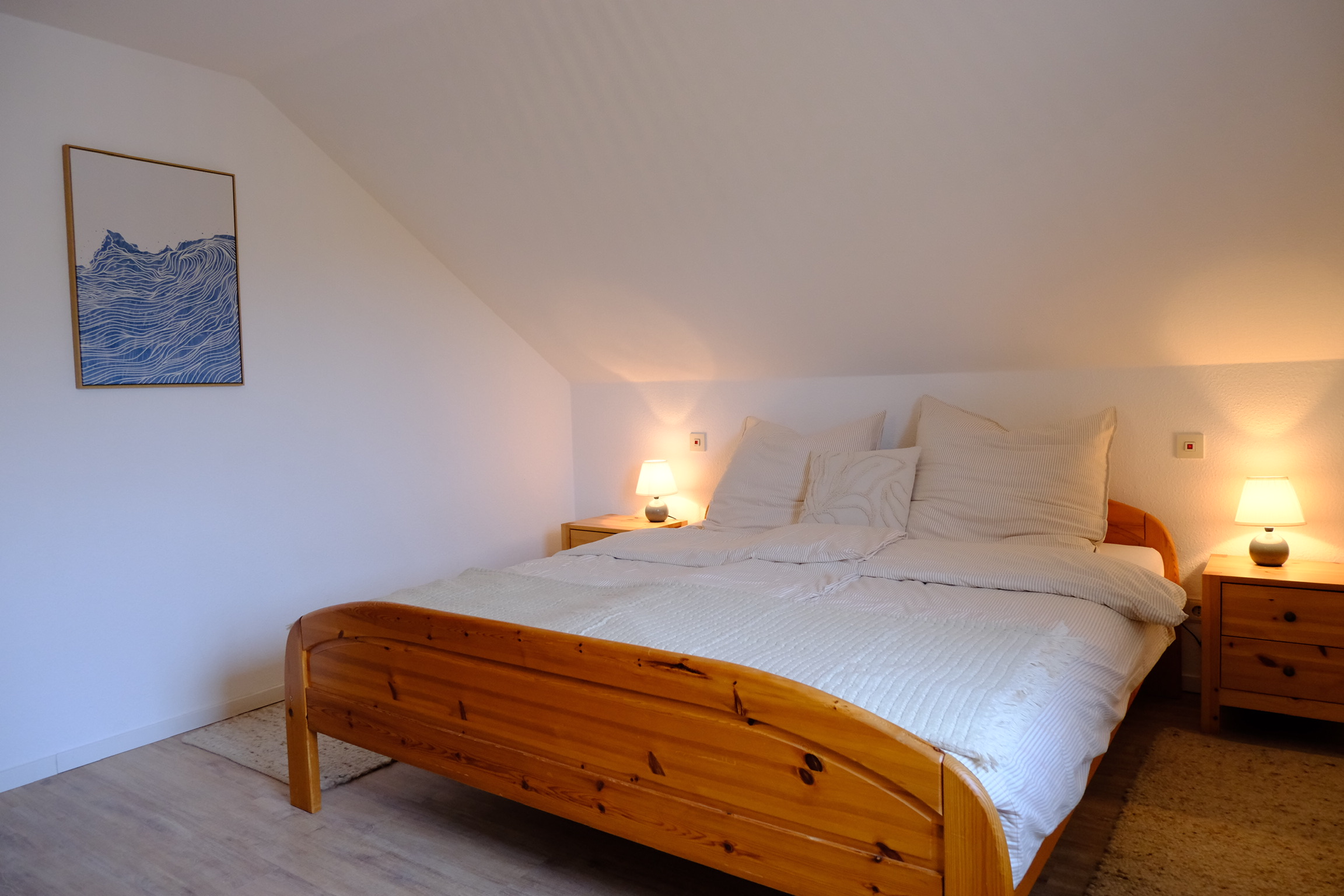 In der 1. Etage befinden sich ein Schlafzimmer mit Doppelbett und ein weiteres Schlafzimmer mit zwei Einzelbetten. Von dort können Sie den wunderschönen Blick auf die Ostsee genießen.